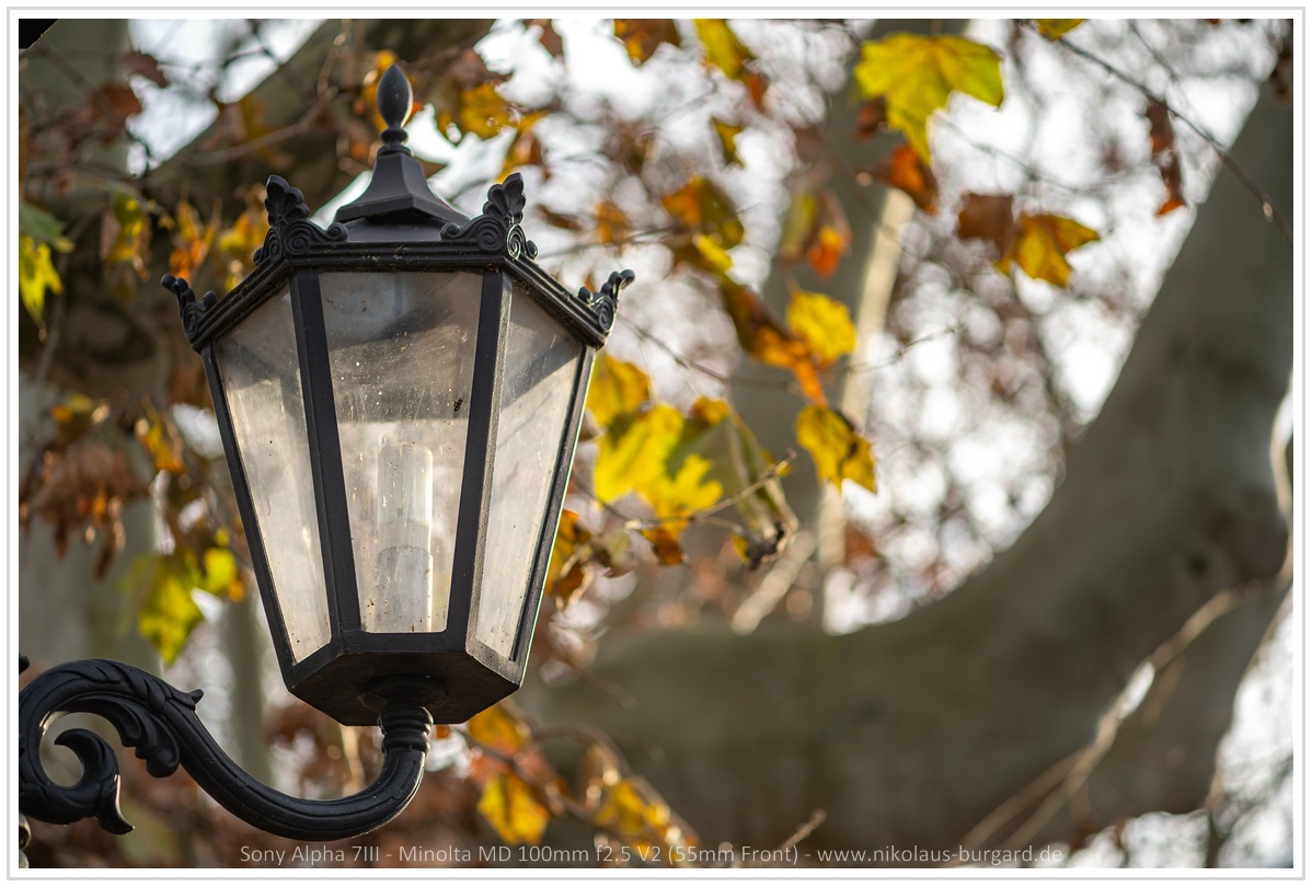 Wenn ich mir etwas wünschen dürft, wäre es eine bessere Naheinstellgrenze. Die Mindestentfernung von 1m ist oftmals zu groß, daher verwende ich gerne einen kleinen Zwischenring. Dafür hat das Objektiv ein ansprechendes Bokeh und aufgrund der geringen CAs, haben die Highlights keine Ränder. Wenn ich mit dem Minolta Set unterwegs bin, ist das Objektiv fast immer dabei. Ich mag es und wie viele andere Minolta Objektive ist es darüber hinaus auch noch einigermaßen preiswert.