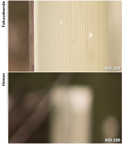 100% Crops aus der Fokusebene und dahinter: