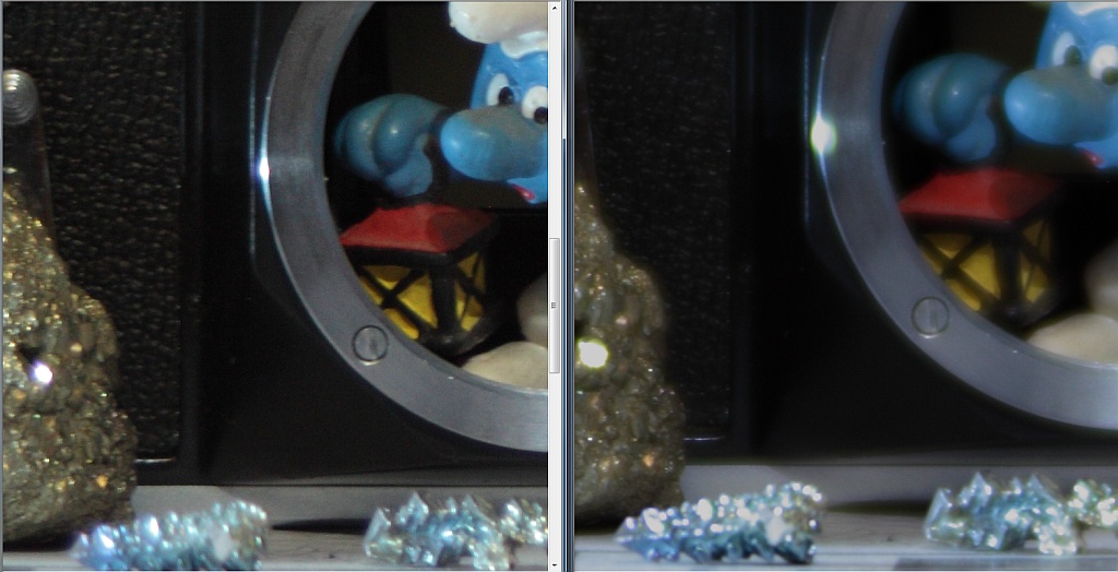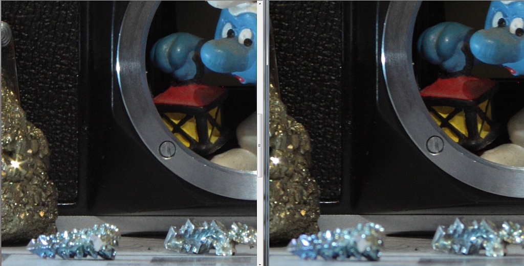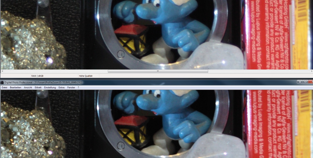 1. Macro/Bokeh bei minimalem Objektabstand, Offenblende (links "Profile Zoom", rechts das Tokina)