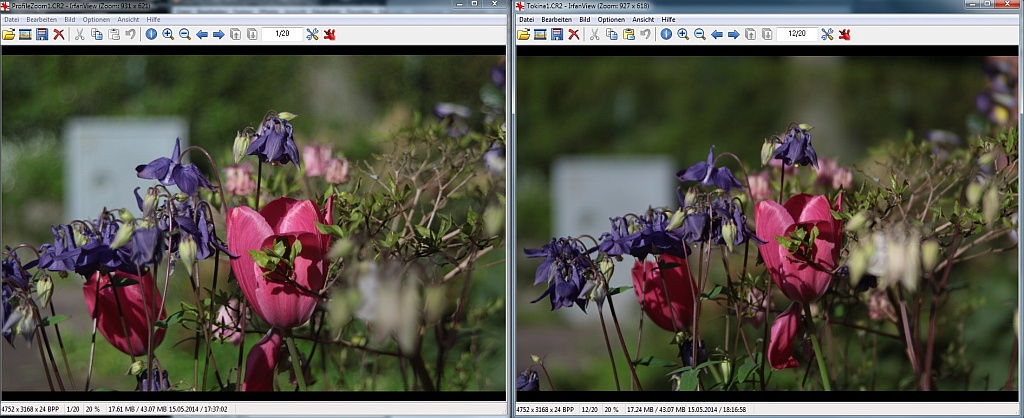 Profile Zoom links, Tokina rechts