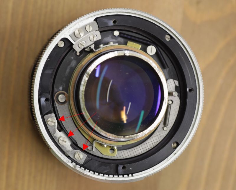 Das äußere Helicoid ist mit drei kleinen Messingschrauben am Fokusring befestigt.