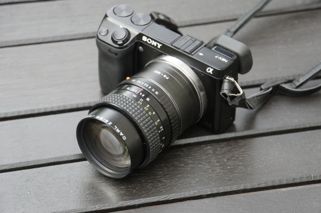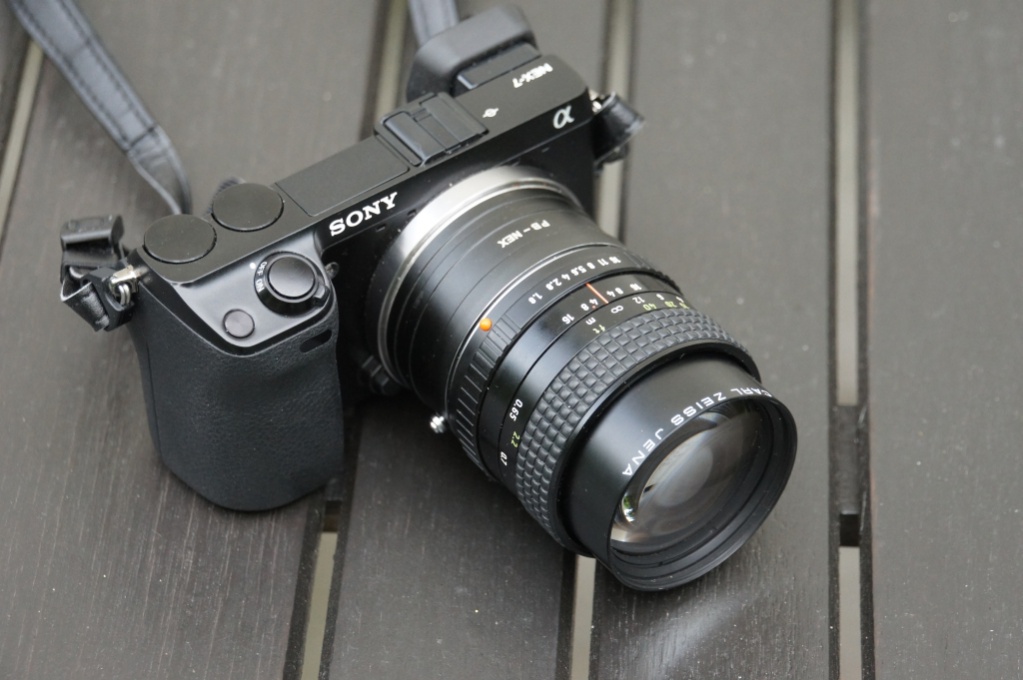 anbei die "Gesamtkomposition" Prakticar 1,8/80, Adapter und NEX7. Eine stimmige Kombination, die auch sehr gut in der Hand liegt. Das Gewicht des Objektivs ( 340 g ) ergibt zusammen mit dem Kameragewicht eine gut austarierte Einheit, insgesamt mit Adapter ca. 750 Gramm. Allerdings macht mir der Adapter etwas Probleme, wie ich in einem anderen Thread schonmal beschrieben habe: