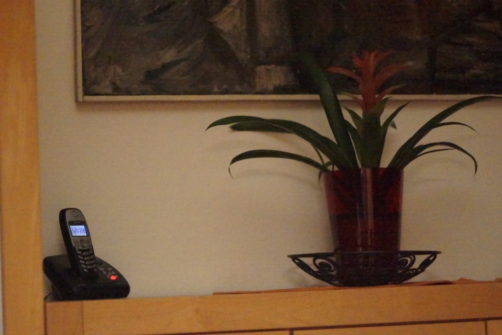 Nun zum Vergleich zwei Bilder ähnlicher Pespektive. Wohnzimmer, irgendwo in der Ecke brennt eine 40W-Funzel und verbreitet gemütliche Stimmung. Nix zum Fotografieren also. Aber es geht !
