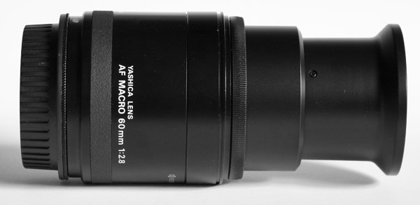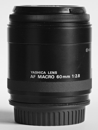 Vor einigen Jahren habe ich mal eine Yashica 230 AF Ausrüstung gekauft, da war auch dieses 2,8/60 Macro dabei. Da ich der Kamera das Bajonett nicht entreißen wollte, um einen