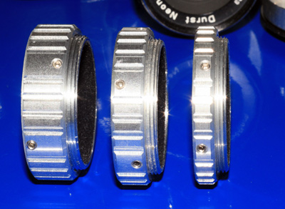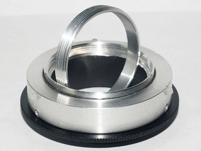 Dieser Innenverbinder wandelt bei Bedarf das M39 Innengewinde wieder in ein gewohntes M39 Aussengewinde für die Aufnahme von Objektiven über die Abstandsmuttern.