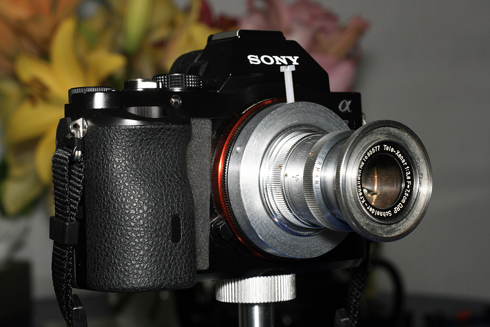 Ob nun eine, zwei Muttern oder mehr Muttern benutzt werden, kommt auf den Abstand an, den das jeweilige Objektiv bei seiner Brennweite für „unendlich“ fordert, ist aber insgesamt sehr schnell durch reines Zusammenschrauben montiert.