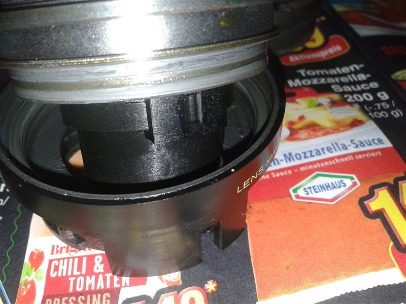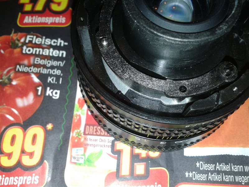 Ring für Offenblendenschaltung entfernen und den silberfarbenen Distanzring auch