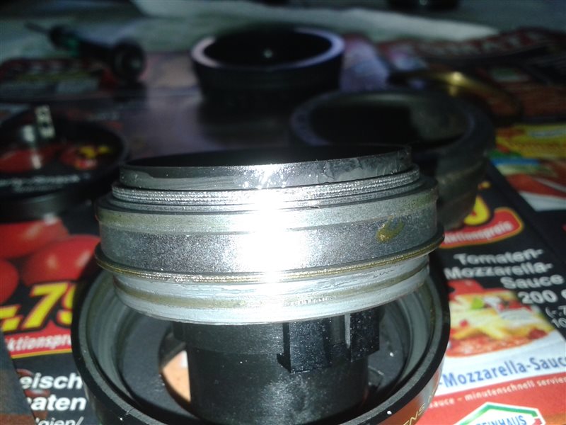 Wenn die korrekte Position gefunden wurde, den Messingring mit der äußeren Fassung mit Lack oder Sekundenkleber verbinden. In dem Fall eher mehr als zu wenig, da der Ring sich sonst schnell wieder lockert. Vorher natürlich die Oberflächen entfetten (Feuerzeugbenzin oder Isoprop bzw. Aceton) !