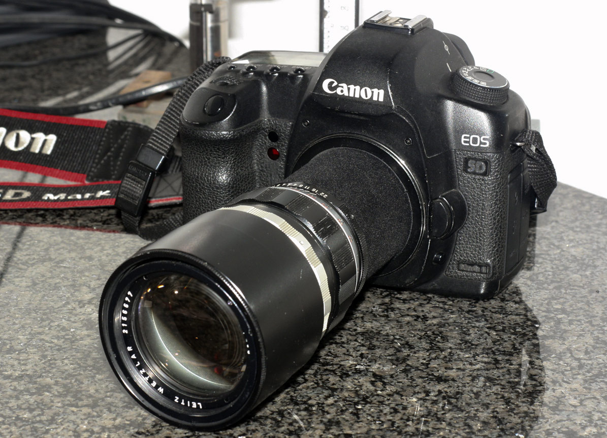 Voila und schon haben wir das Telyt 4/200mm an unserer Sony A7 Kamera...