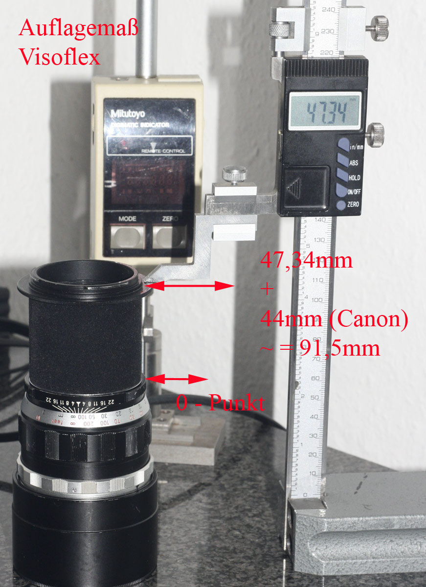 Rechnet man nun das Auflagemaß der Canon Kameras hinzu, ergibt sich ein "Gesamtauflagemaß" von ungefähr 91,5mm...