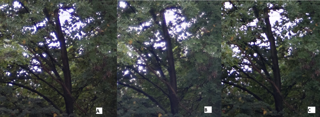 C hat wie A einen guten Kontrast. CAs und Überstarhlungen sind so gut wie keine vorhanden. Dafür ist die Schärfe am schlechtesten.