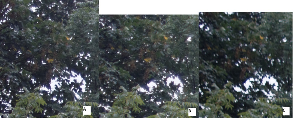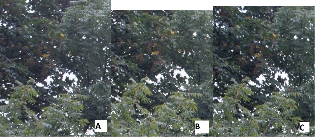 Fast ein Gleichstand, aber B scheint einem Hauch Vorsprung bei der Schärfe zu haben. C hat einen winzigen Vorteil beim Kontrast.