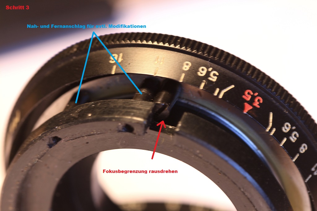 Wenn man die Stiftschraube für den Nahbereich entfernt, gewinnt man sicherlich einige cm an der Nahgrenze.