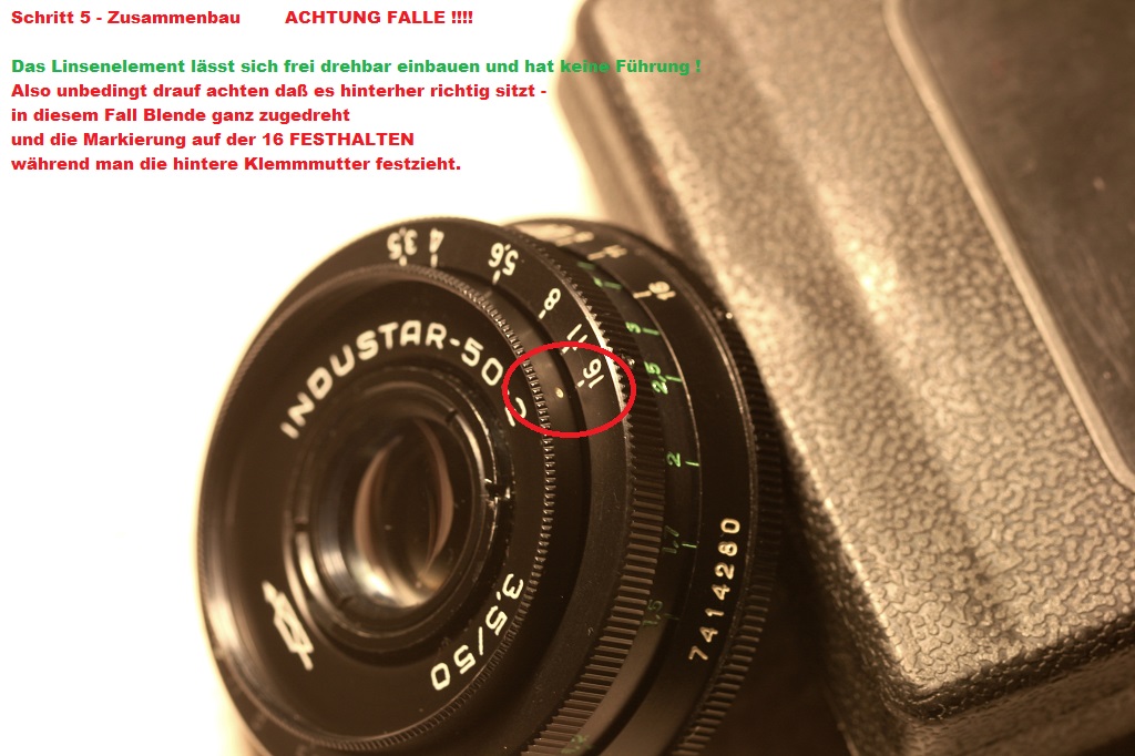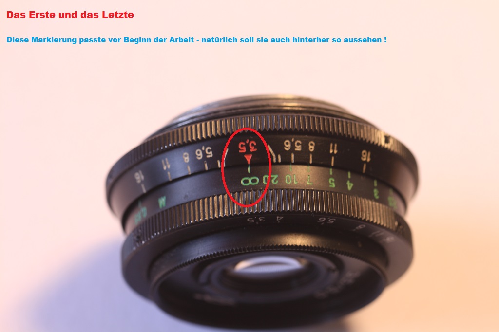 Dies ist besonders bei Objektiven mit Vorwahlblende ohne Rasterung zu beobachten (frühe Helios 44 und unser Industar).