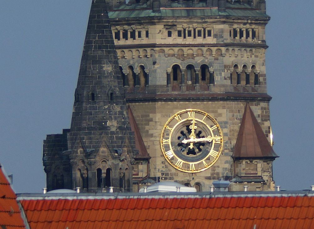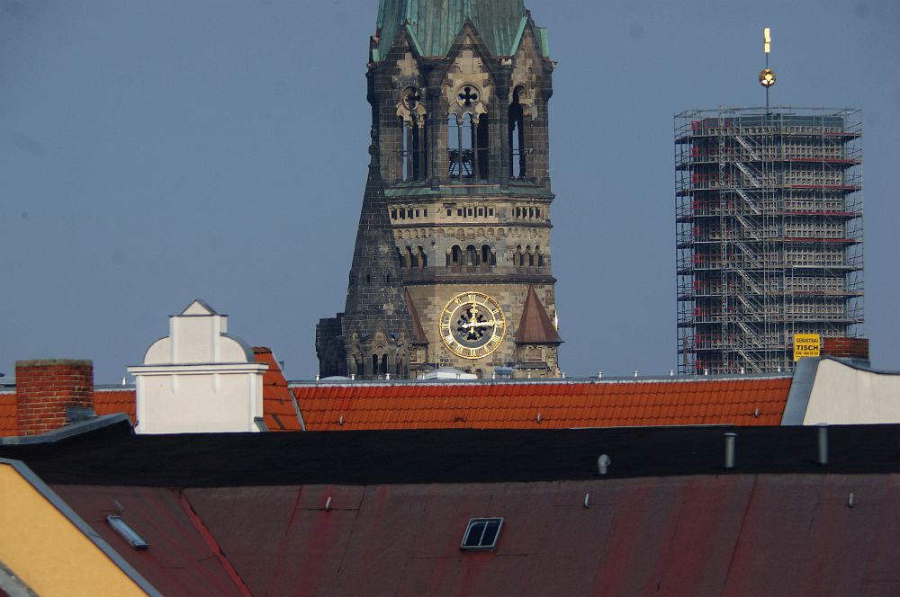 ein Blick aus meinem Arbeitszimmer auf die Gedächtniskirche, mit Brennweite 200mm (Entfernung ca. 600m), anschließend ein crop: