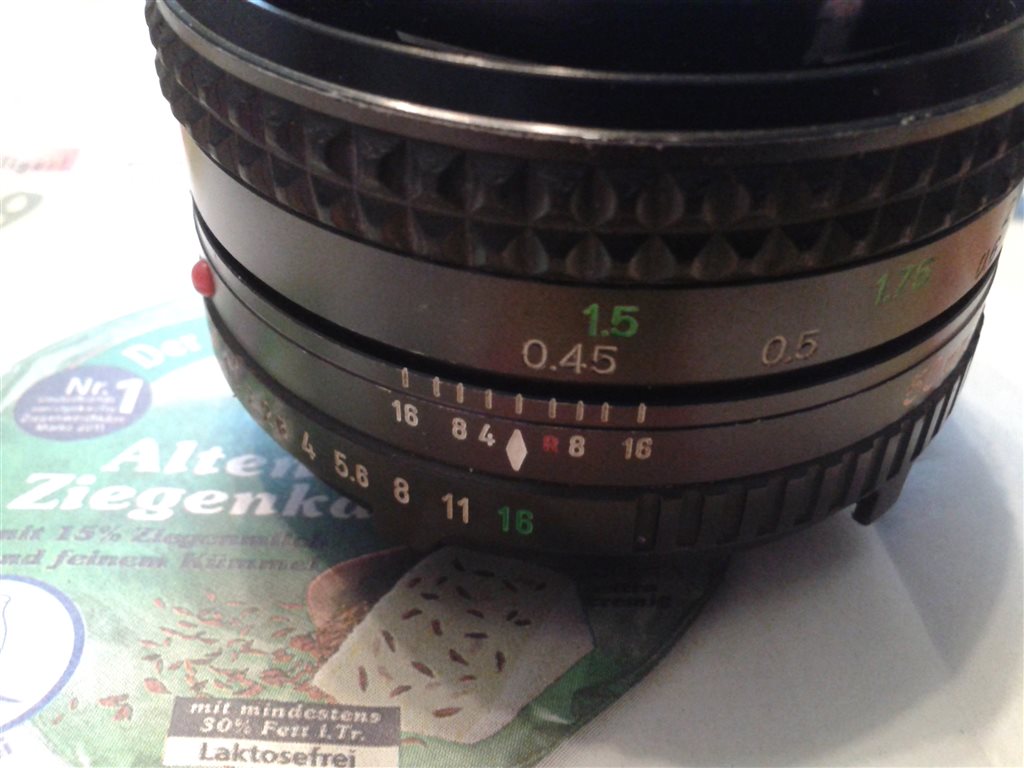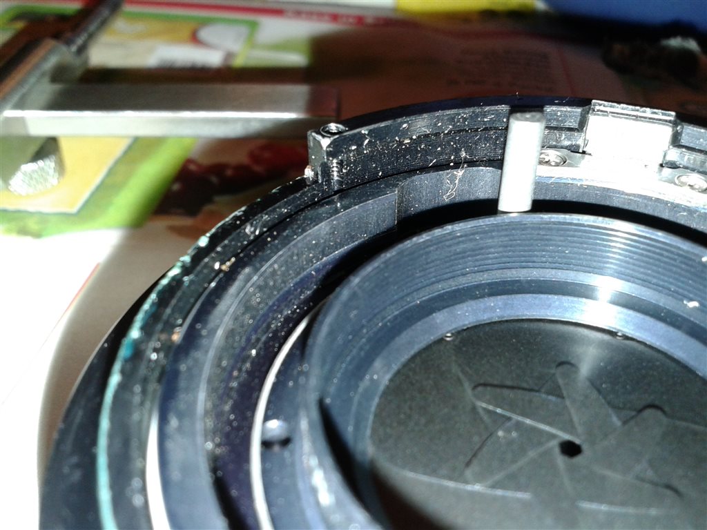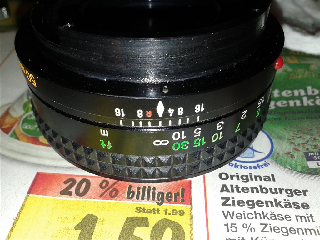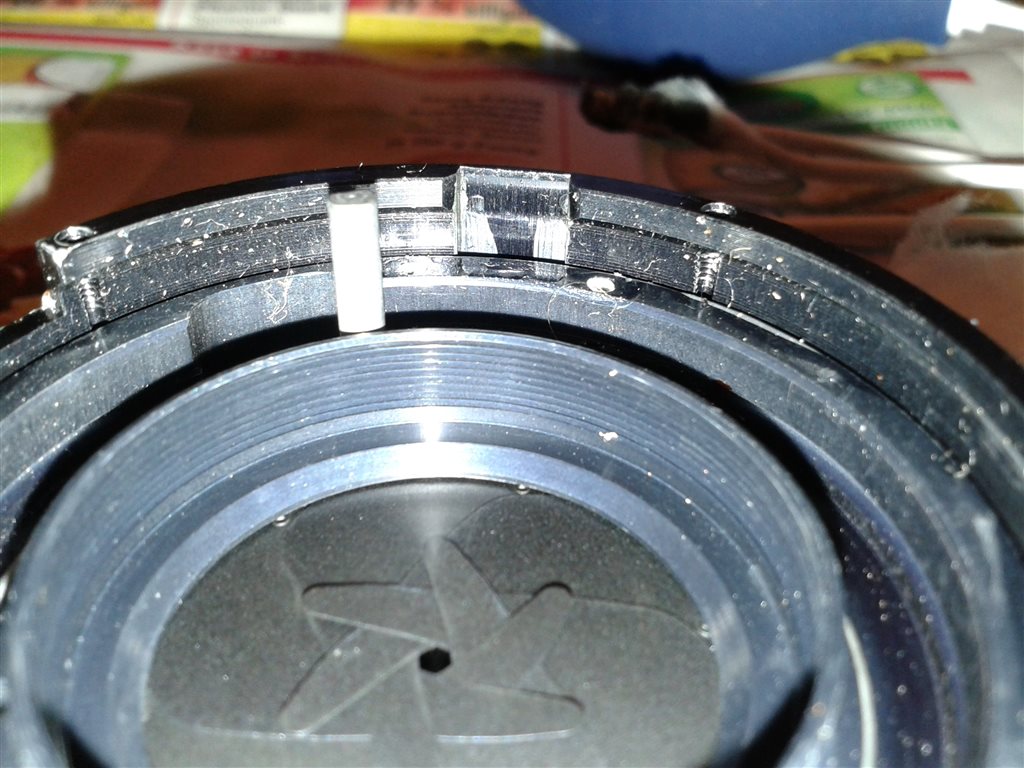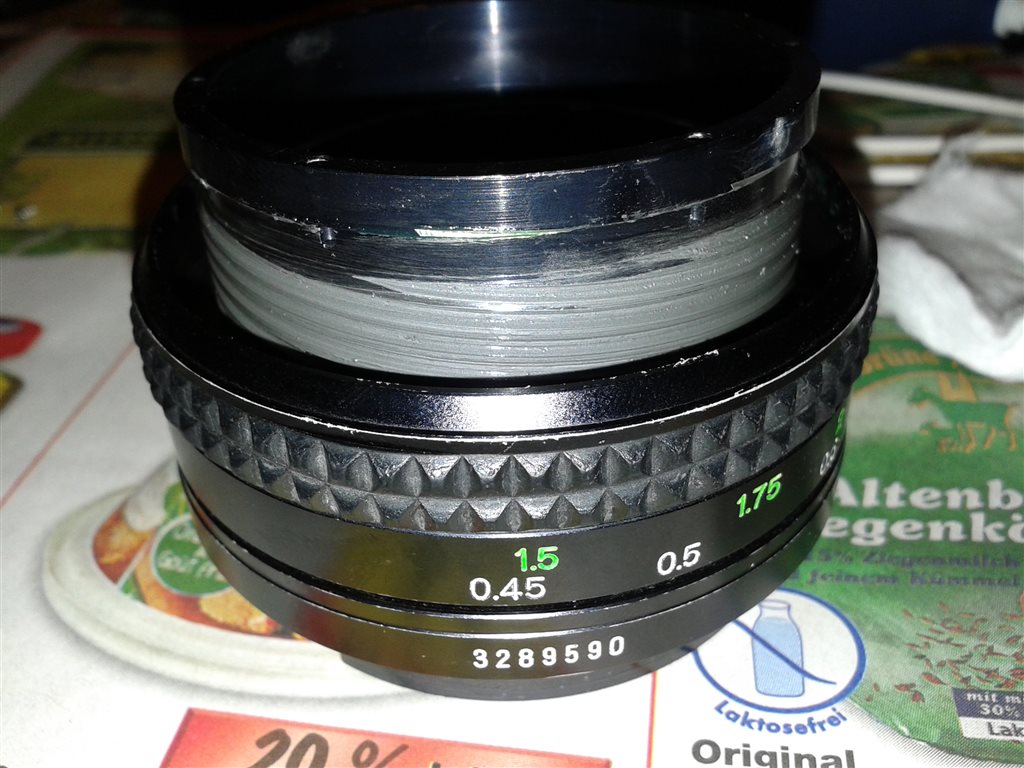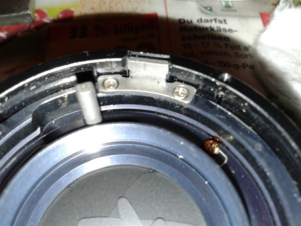 Bevor die Geradführung für die Fokussierung entfernt wird, die Position fotografieren (!!!) - vorher den Fokus auf unendlich drehen, das macht sich am besten.