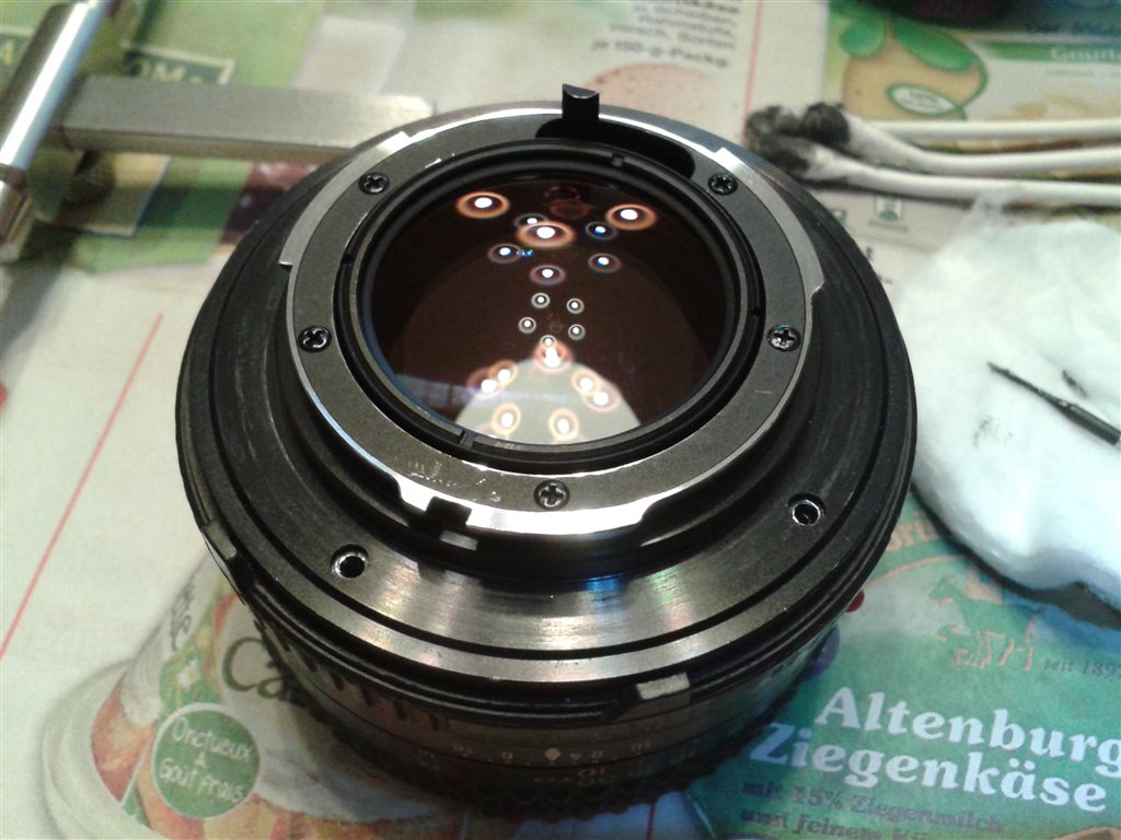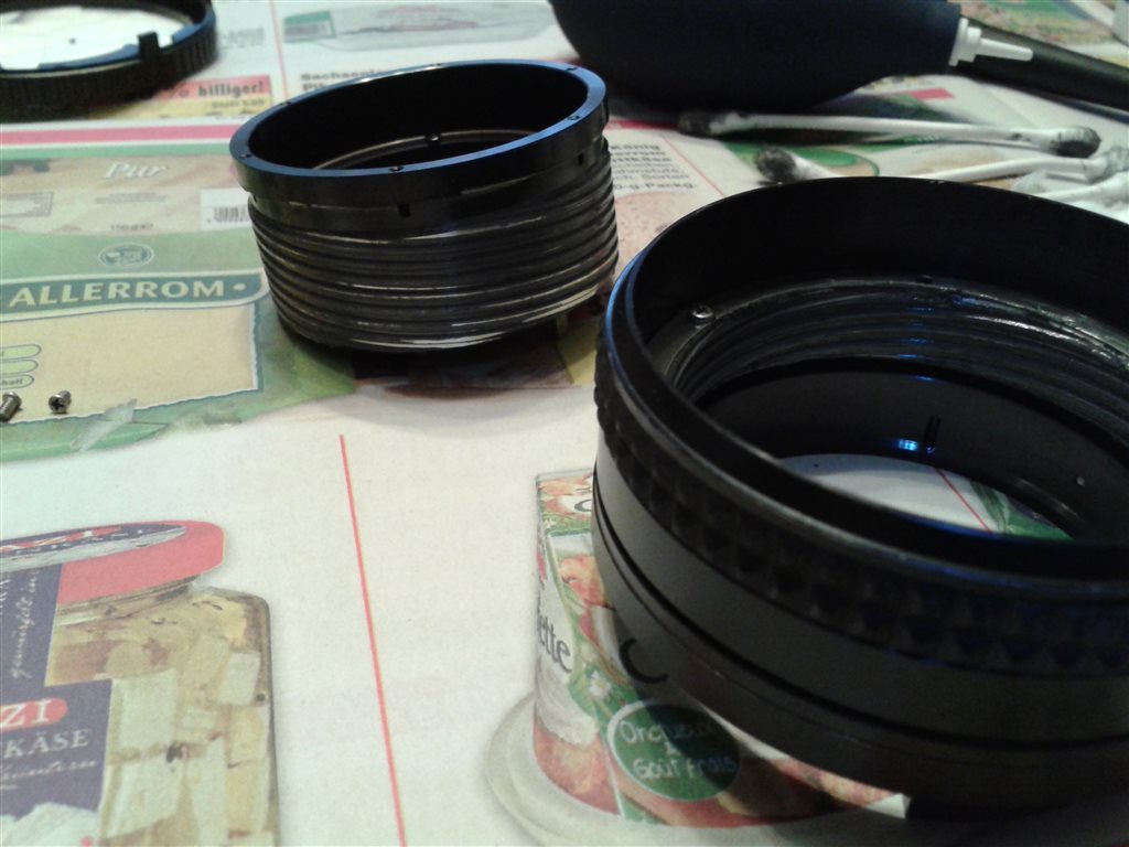Nun, auf den inneren Linsenflächen befand sich überdurchschnittlich viel Staub und die Fokussierung kratzte leicht - also etwas Dreck, der aus dem Schneckengang entfernt werden wollte.