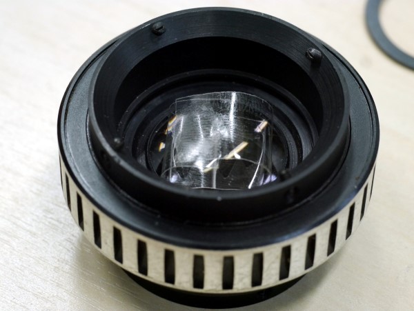 Einen Tesafilm auf die Linse geklebt und mit vorischtigem Wackeln kann man die Linse rausziehen, bzw. rausnackeln (Bild 9).