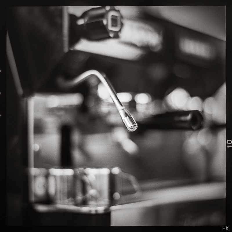 Am (analogen) Mittelformat ist das etwas anderes, denn so viel Lichtstärke für 6x6-Format ist von unbezahlbaren Ausnahmen wohl kaum zu bekommen. Daher habe ich das Objektiv hinten minimal gekürzt und "verschlankt" und dann mit einer Klemmschraube in einem überzähligen Fokuskragen meiner Bronica festgesetzt. Mit dieser "quick-and dirty"-Adaptierung komme ich auf einen vernünftigen Portraitabstand, was mir für ein paar Experimente erst einmal reicht. Es wäre da aber auch noch Spielraum um auf deutlich größere Entfernungen, wahrscheinlich sogar unendlich zu kommen. Auch an diesem 6x6-Format ist keine störende Vignettierung zu erkennen und man kann bis nahe an den Rand des Bildfeldes scharf fokussieren - wenngleich dies natürlich ziemlich schwer ist durch die extrem geringe Schärfentiefe.