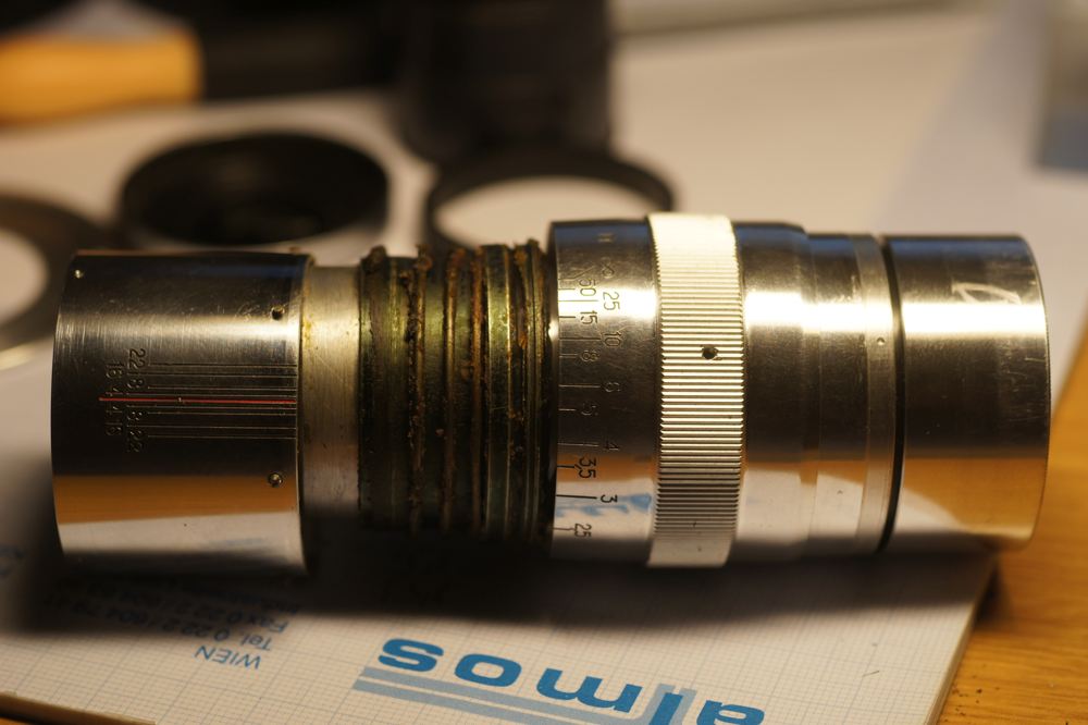 wenn ein Neuzugang, welches an keine meiner Fotogeräte passt - wird passend gemacht - soweit technich umsetzbar. Leider hab ich kein Bild des unversehrten Objektiv gemacht, in den Fingern hat´s mächtig gekribbelt.