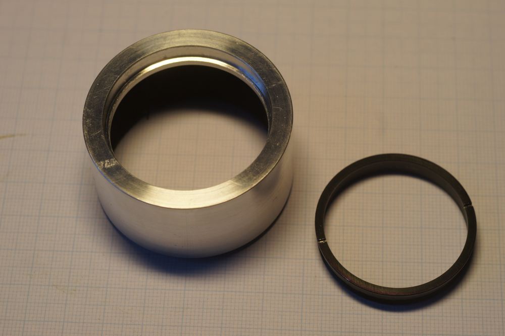 Auf meiner kleinen Proxxon-Drehe einen Aluring aus einem Restück gedreht, Außen-Durchmesser 52,5mm, rechts der Befestigungsring