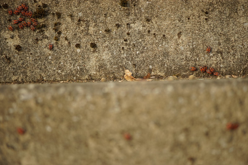 Randbereich: Das Bild wurde ebenfalls bei Offenblende angefertigt und nicht bearbeitet. Auch der Randbereich (oben links) ist immer noch scharf (Freihandfokussierung auf die roten Tierchen).