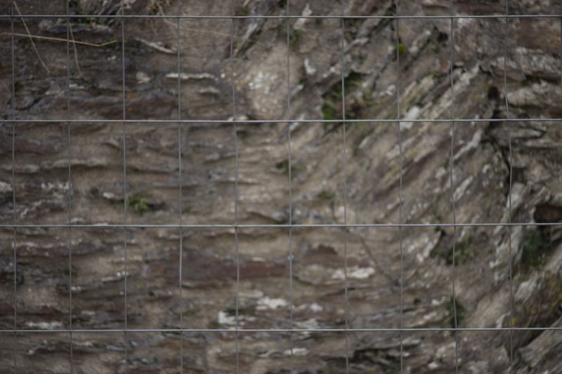 Verzeichnung: Hier einmal ein Bauzaun. Die horizontalen Drähte waren grade, die vertikalen Drähte waren schon teilweise verzogen (das macht nicht die Linse). Wahrscheinlich nicht das geeignetste Bild.