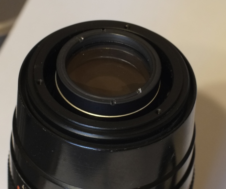 Ich komme jetzt aber bis jetzt nur zur letzten Linsengruppe, und die bekomme ich nicht auseinander. Leider fehlt mir auch das Richtig Werkzeug, wenn ich mit 2 Schraubenziehern probiere den Ring zu drehen kommt mir nur die komplett Linsengruppe entgegen. Gibt es einen Tipp wie ich den inneren Ring lösen kann? Und wie komme ich danach weiter?