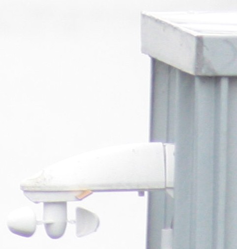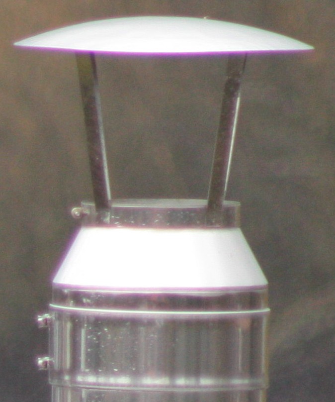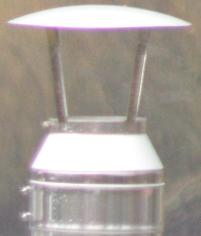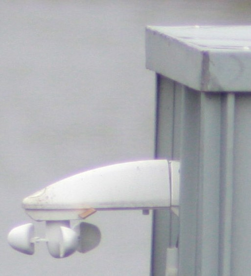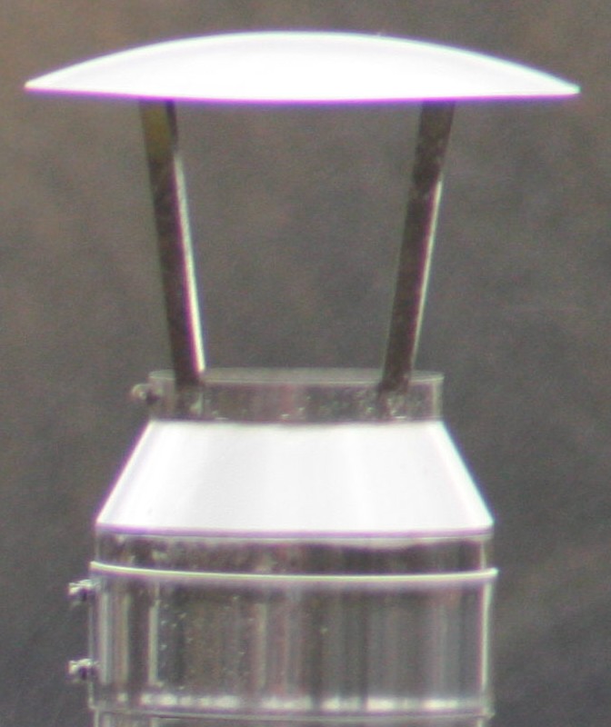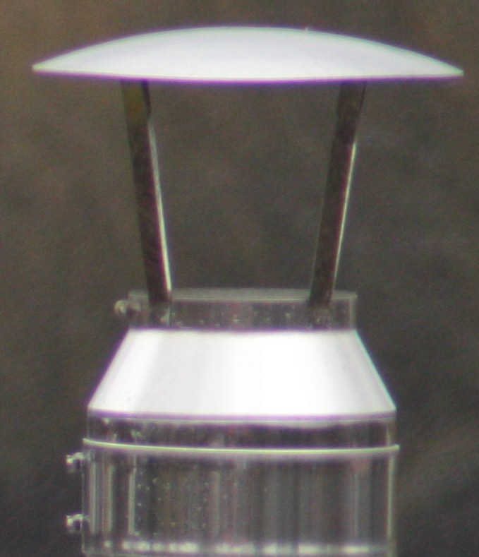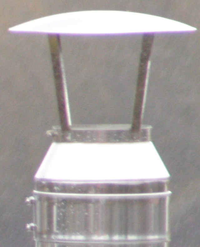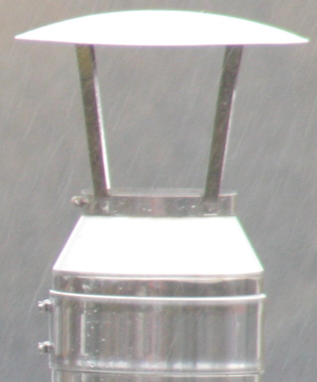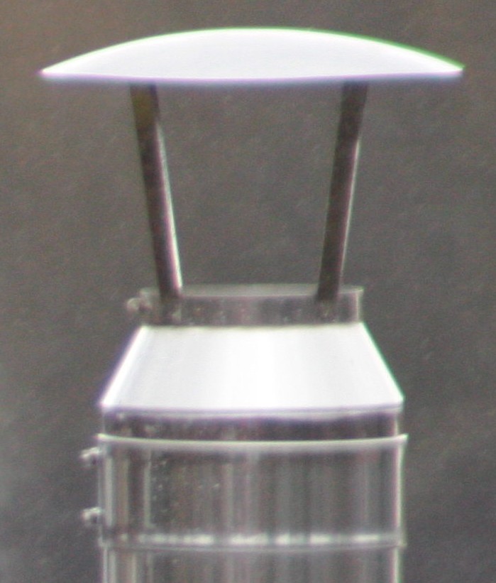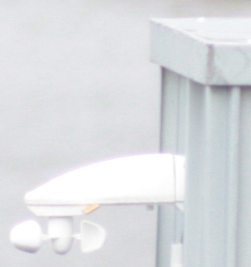 Im Folgenden gibt es nur 100% Bildausschnitte aus dem Zentrum und die Schornsteinkappe bei 300mm, da man ansonsten bei 1024 Bildpunkten Gesamtbildbreite keine Unterschiede erkennt.