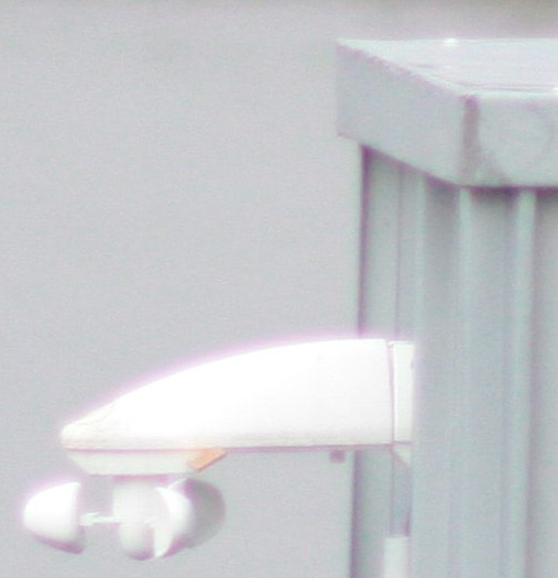 Dieses riesige Metallkonstrukt hat nochmals heftigere CA-Probleme und von Schärfe kann man selbst bei Blende 8 noch nicht reden.
