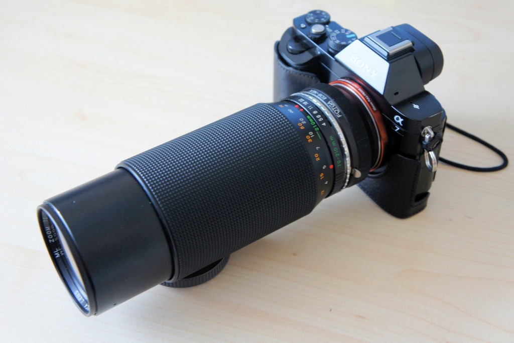 Zunächst mal Bilder vom Objektiv, hier an der Sony A7: