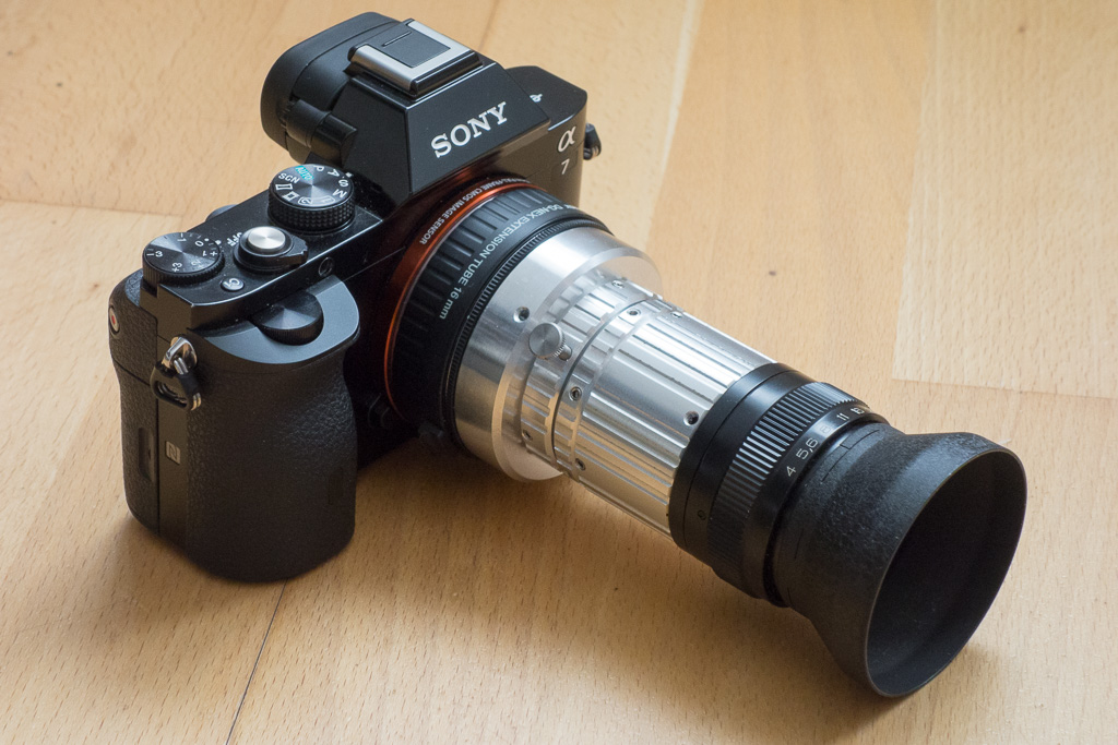 Das sowjetische Industar 100U flog mir auf einer Fotobörse zu (zusammen mit diversen anderen Vergrößerungsobjektiven). Da ich bereits den speziellen VNEX-Tubus und einen Zwischenring-Set für das Apo Rodagon 4/90mm hatte, war klar, dass mittels VNEX-Set auch ein 110er ohne Probleme an die Sony A7 zu bringen war.