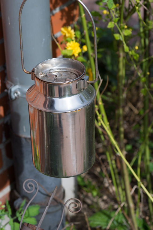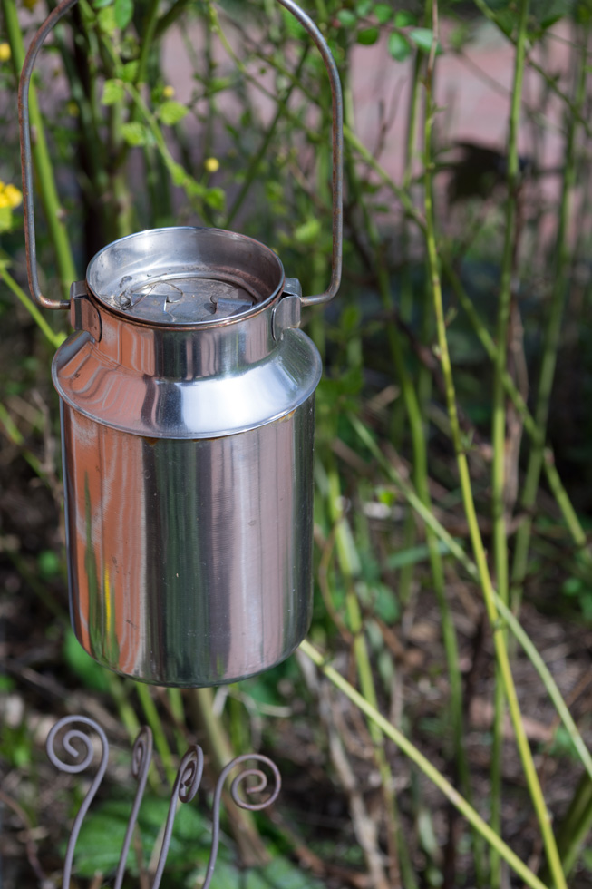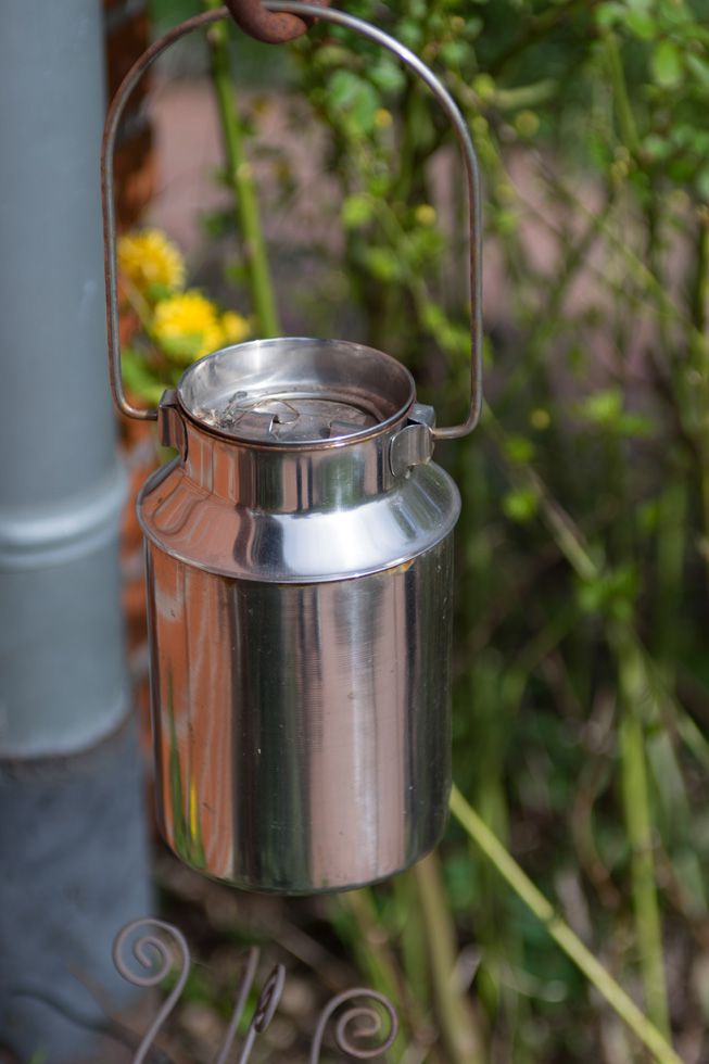Detail der Metallkanne auch nochmal aus der Nähe, einmal Blende 4, einmal Blende 8