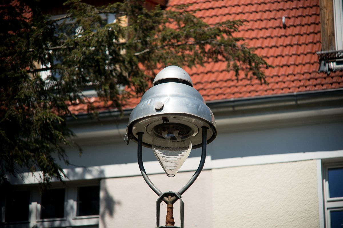 (zunächst Gesamtmotiv bei Blende 4 nebst Crop, danach ein Crop von der gleichen Laterne bei Offenblende)