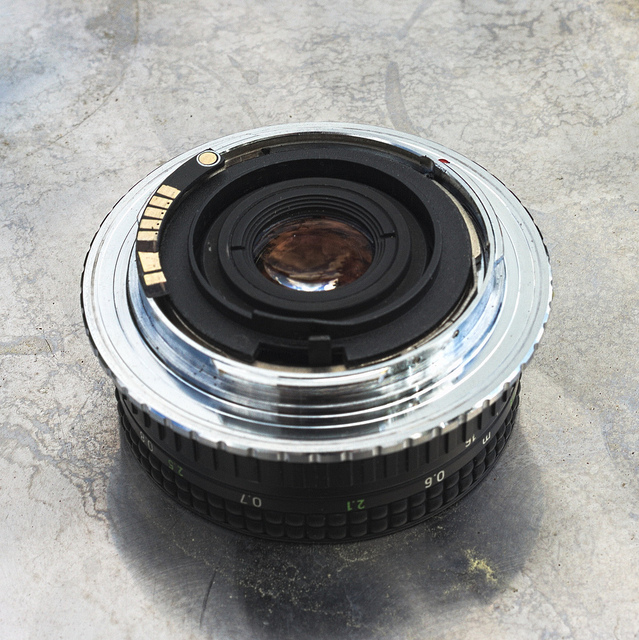 Ein normales PB-Objektiv (hier mit EOS-Adapter) sieht von hinten wie gezeigt aus, von innen nach außen: