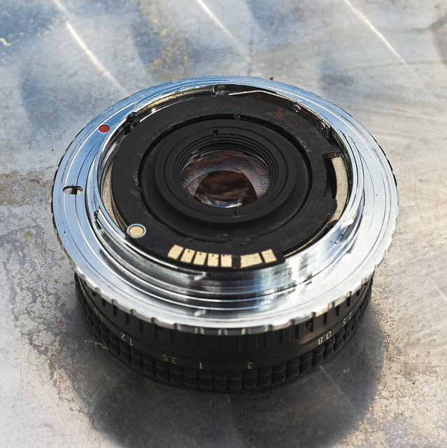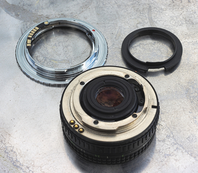 ACHTUNG: Abhängig vom Objektivtyp gibt es wegen der Rücklinsenfassung trotzdem Probleme mit dem Spiegel, da sich aber ansonsten gleiche Objektive im Überstand nach hinten unterscheiden, da die Flächen offenbar zwar endbearbeitet, aber in Bezug zum Bajonett nicht kalibriert sind, muss das von Fall zu Fall getestet werden!