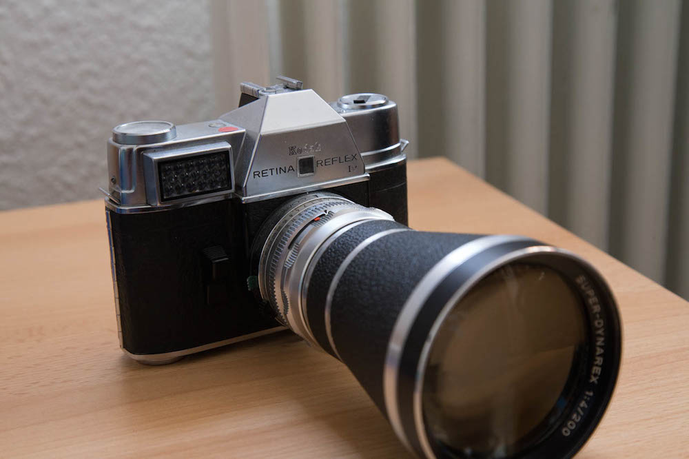 Hier ist das Voigtländer Super-Dynarex 200mm f4 an der Retina Reflex IV zu sehen.
