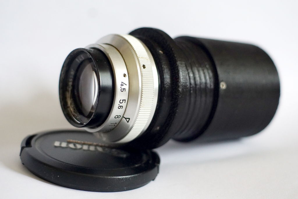 Objektiv: Steinheil Cassar 4,5/105mm adaptiert mit selbst ausgedrucktem M42 Adapter