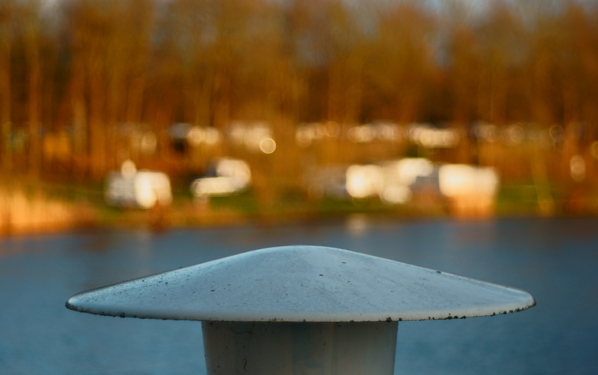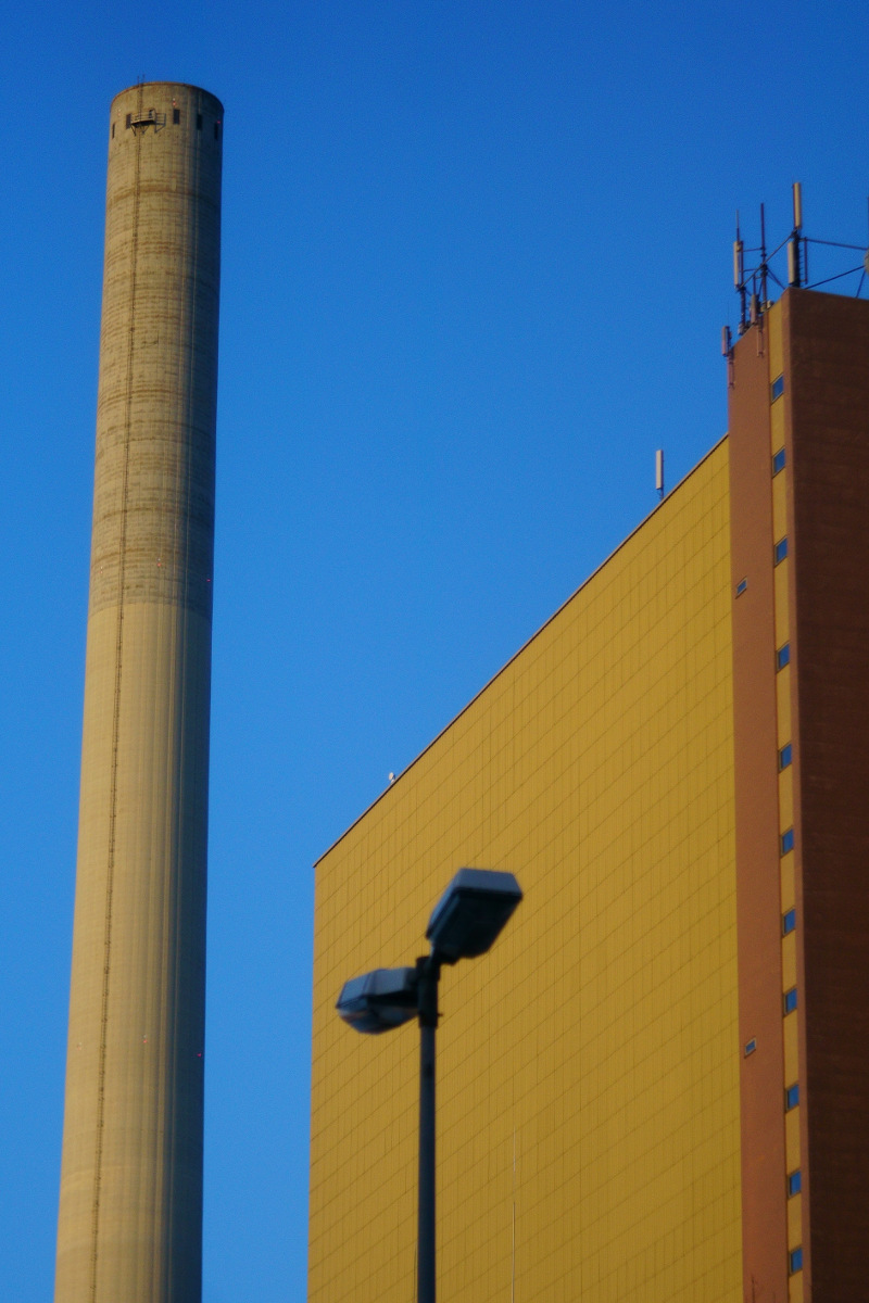 Nicht Superscharf, aber unterwegs auf dem Fahrrad schön leicht am "Hals" hängend.Fokus auf der Schornsteinspitze.