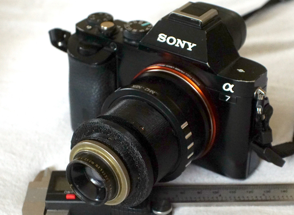 Objektiv: C. Friedrich München, Doppelanastigmat CORONAR 4,5 7,5cm adaptiert mit selbst ausgedrucktem Adapter auf M42