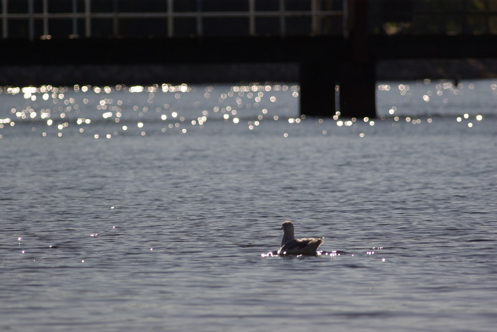 Die Möwe ist nicht richtig scharf, es sind violette Säume des Bereichs vor der Schärfeebene zu sehen.