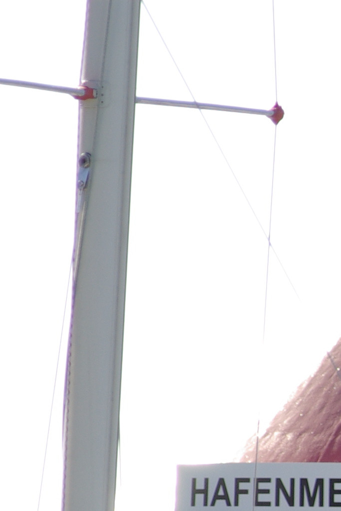 Dieser Auschnitt möge verdeutlichen, dass CAs kein großes Thema bei diesem Objektiv sind. Bei Offenblende sind leichte violette Säume und Bokeh-Fringing zu sehen: