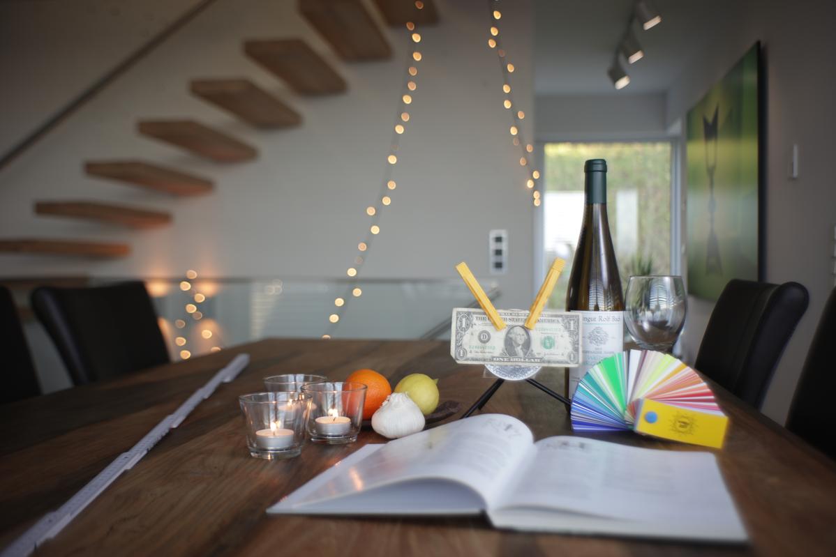 Das Testszenario ist ein Arrangement von verschiedenen Gegenständen in einem Innenraum mit dem Ziel, in nur einer einzigen Aufnahme ein möglichst aussagekräftiges Bild über die Eigenschaften der zu testenden Optik machen zu können. Kritik dazu und auch zur Durchführung selbst ist immer Willkommen – es gibt bestimmt noch etwas zu verbessern. Lange habe ich z.B. überlegt, noch hart angeblitzte Metallgegenstände zu platzieren.