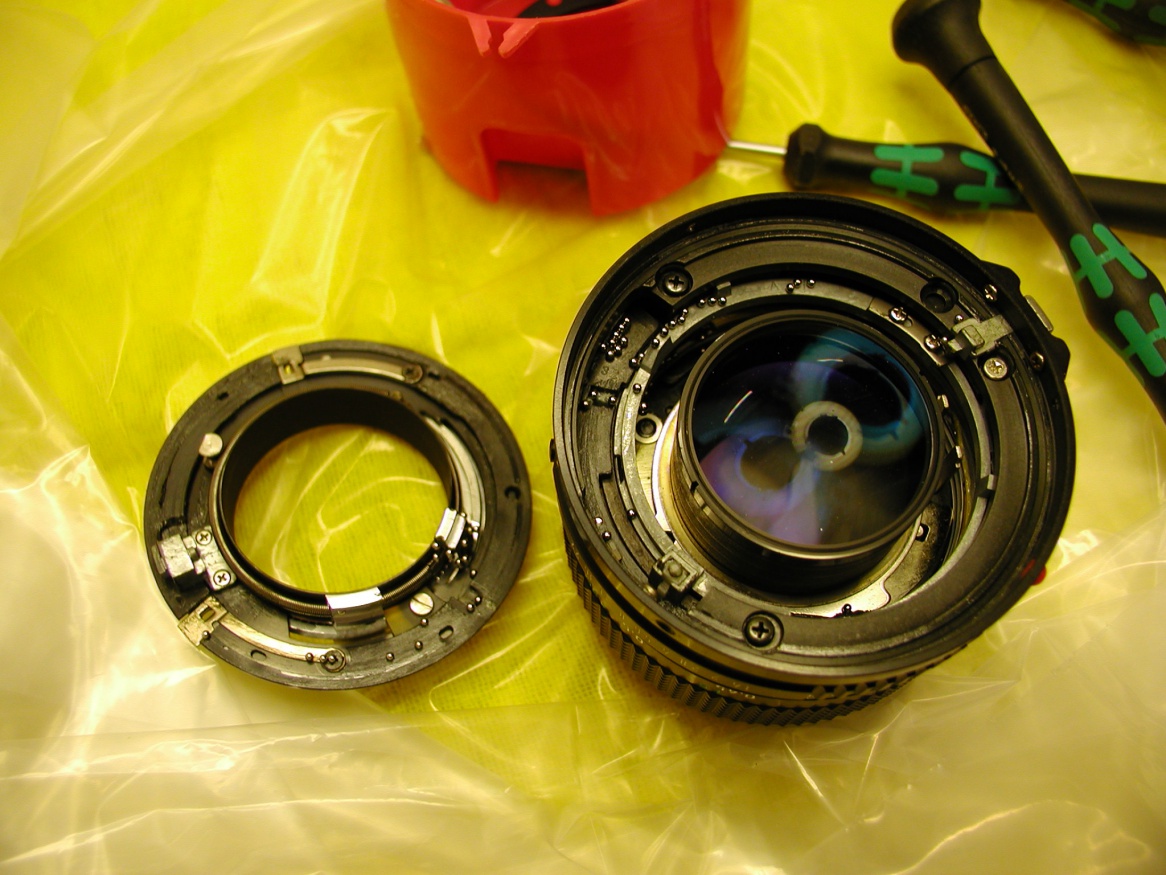 Da ich ja schon ein Canon 50mm SSC zerlegt und wieder aufgebaut habe dachte ich kein Problem :-)) Jetzt kommen mir aber Zweifel da es nicht gleich aufgebaut ist. Hier mal ein paar Fotos davon.