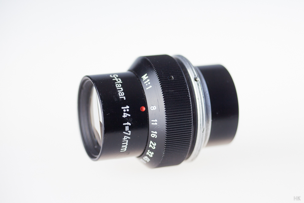 Das Carl Zeiss S-Planar 1:4 f=74mm ist ein hochspezialisiertes Objektiv, das Zeiss allem Anschein nach dafür optimiert hat, perfekte Kopien von Kleinbild-Dias oder -Negativen zu erstellen. Es hat gleich zweimal auf dem Objektiv den Maßstab 1:1 festgehalten und mehrere Tests im Internet bescheinigen dem Objektiv herausragende Eigenschaften bei Abbildungsmaßstab 1:1 mit nahezu vollständiger Abwesenheit von Verzeichnung, CAs und (Rand-)Unschärfen. Die Leistung scheint aber merklich nachzulassen sobald man sich von diesem optimalen Vergrößerungsmaßstab entfernt und außerhalb von 2:1 bis 1:2 ist es wohl nicht übermäßig gut. Ein sehr detaillierter Testbericht mit Messwerten und -kurven findet sich hier: http://coinimaging.com/z74.html