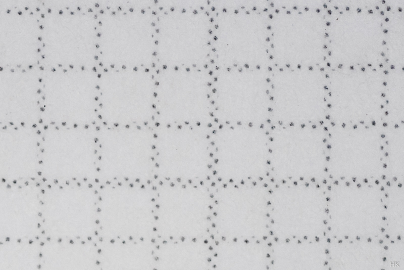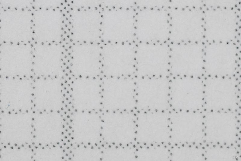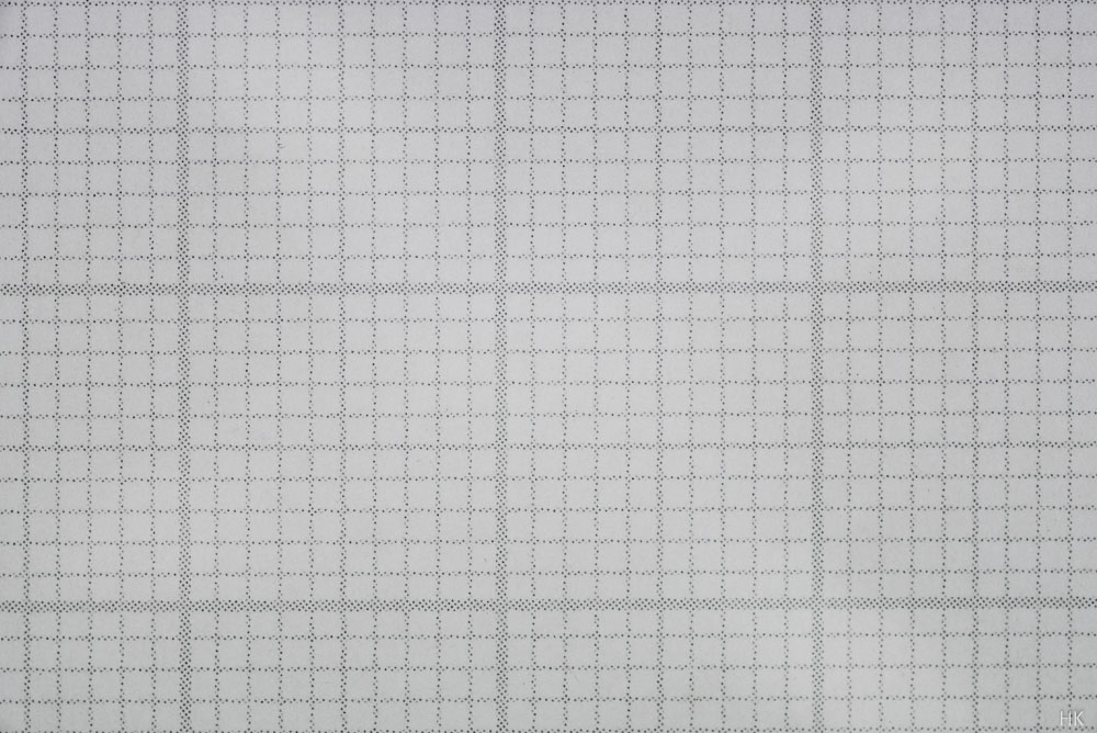 Um zu prüfen inwiefern Verzeichnung, Quer-CAs oder ein Randabfall hinsichtlich Schärfe und Helligkeit erkennbar sind, habe ich ein Blatt Millimeterpapier möglichst senkrecht ausgerichtet bei Offenblende abfotografiert. Man kann erkennen, dass der Maßstab 1:1 halbwegs getroffen ist (ca. 35x23mm).