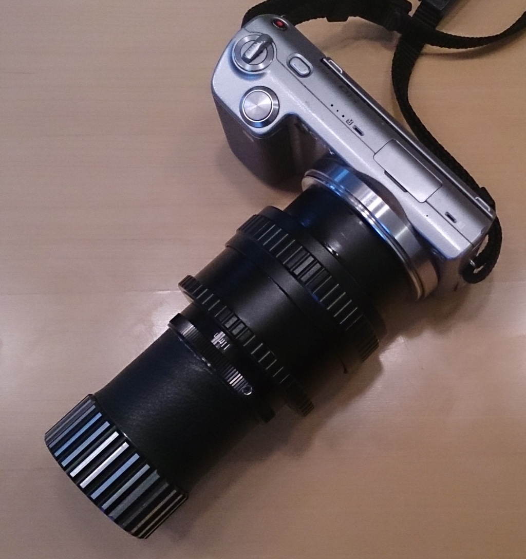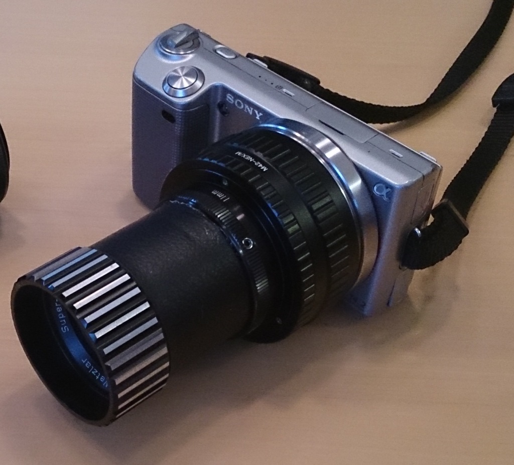 Als Adaptionsbasis habe ich den für die Adaption des 2,8/100 Diaplans angeschafften Quenox-Helicoid Adapter für die NEX verwendet.