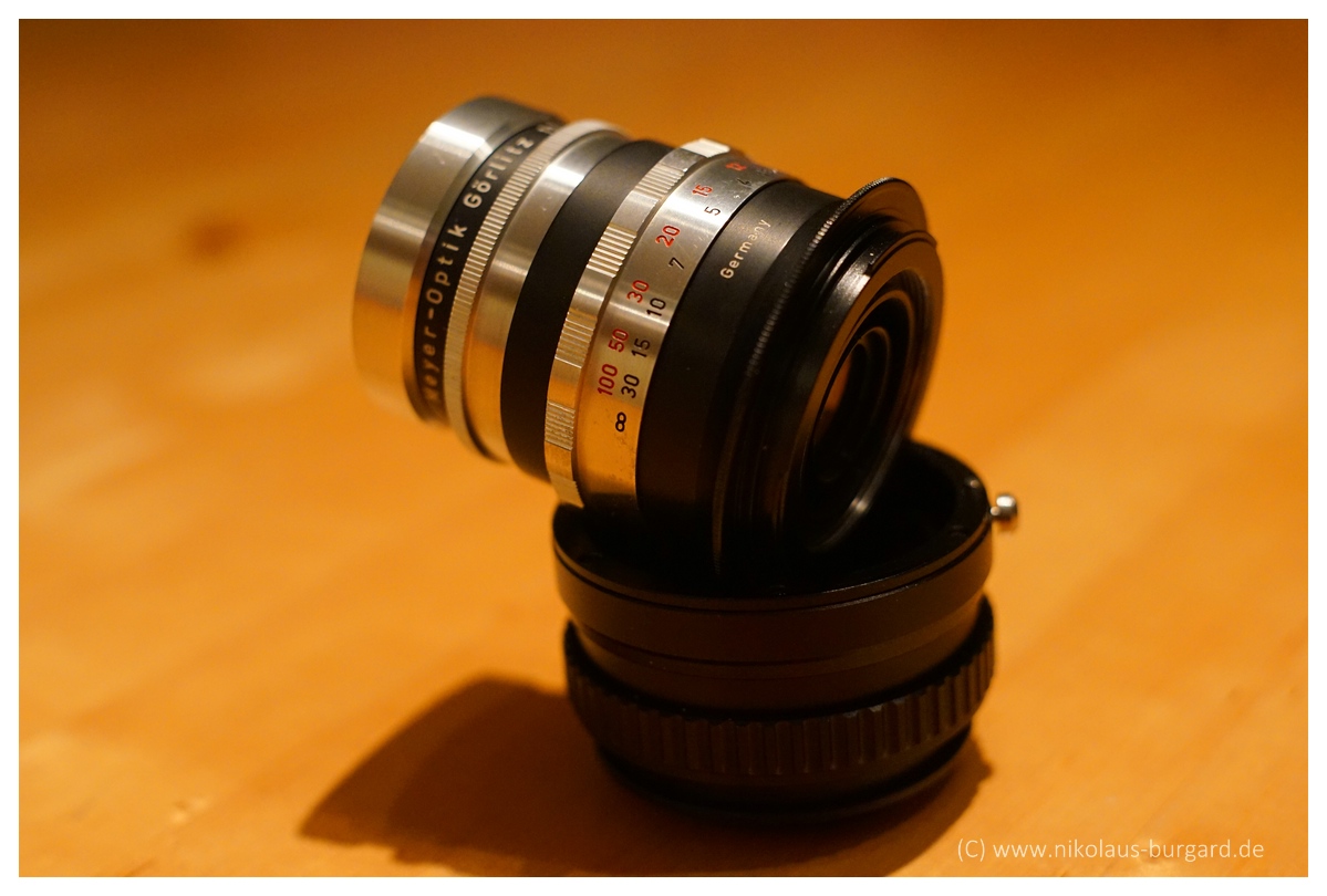 Seit Wochen lag das Objektiv herum und wartete auf einen Adapter- am Objektiv rumfeilen wollte ich nicht, lieber einen weiteren M42-Adapter und den zur S.u machen- aber das woanders und später ... ;)