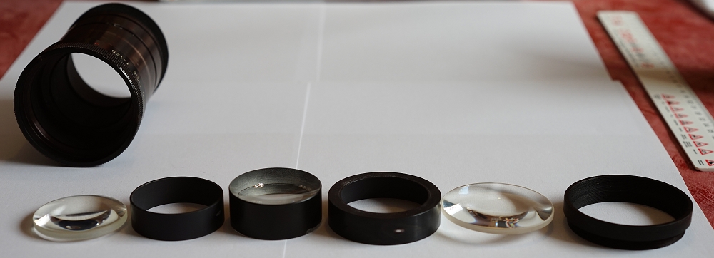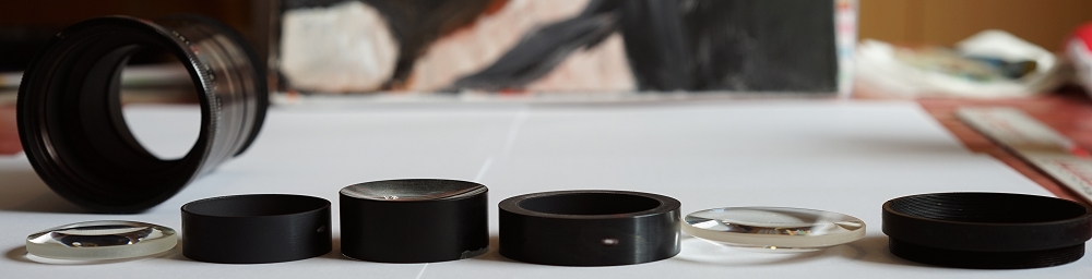 2. Linse mitte - beidseitig konkav, leicht vergütet (die Ränder bröckeln langsam aber sicher)