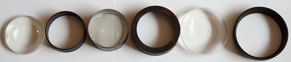 3 Linsen, welche wohl (so meine Vermutung) in eine Legierung aus Messing gefasst wurden.